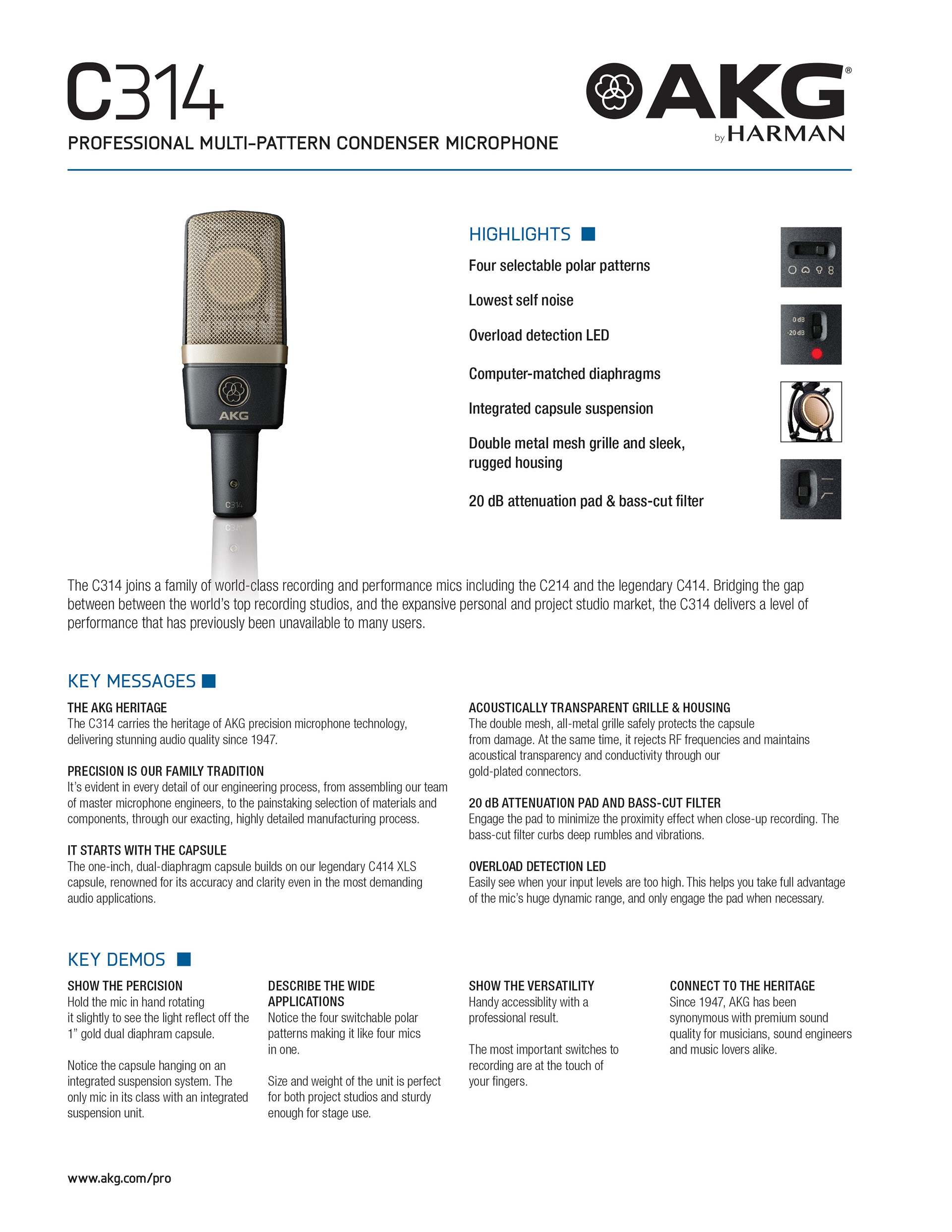 AKG - C314: Conceptualization, Branding and Design. Trade Ads, Photoshoots, Retouching, Cut Sheets, Web Banners.